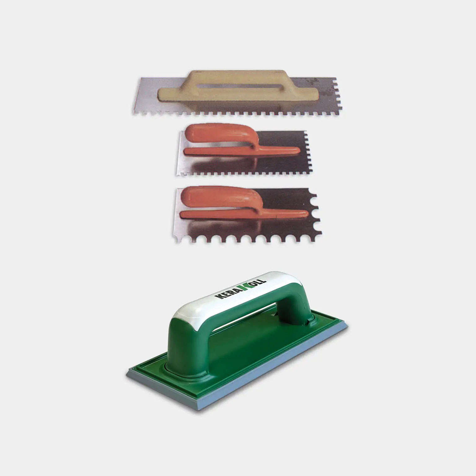 Gletiere de oţel pentru aplicarea cu adezivi eco‑compatibili a plăcilor ceramice şi a pietrelor naturale.