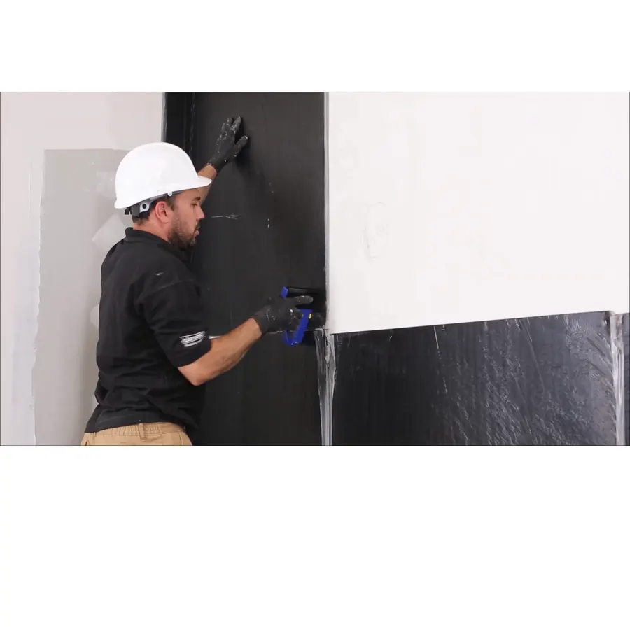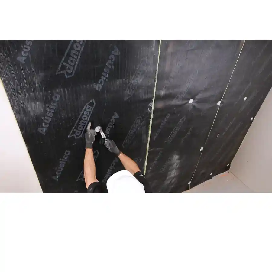 Membrană multistrat destinată izolării fonice a pereților, tavanelor și pardoselilor, utilizată în sisteme de construcție pentru reducerea zgomotului aerian și a vibrațiilor. Structura combină o membrană bituminoasă de înaltă densitate cu un strat textil poros, ceea ce permite creșterea masei elementelor de construcție și îmbunătățirea performanței acustice a pereților sau plafoanelor. Produsul este conceput pentru aplicații în spații rezidențiale sau comerciale unde este necesară reducerea zgomotului și îmbunătățirea confortului acustic.